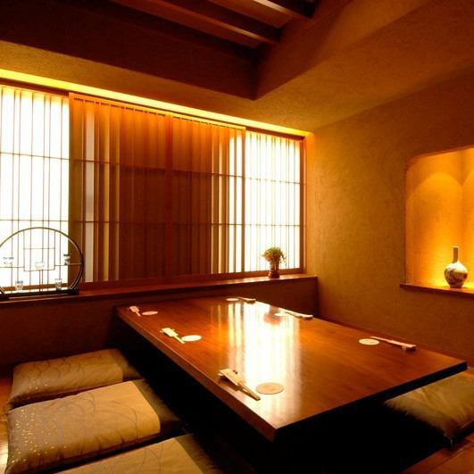 【2楼设有下沉式被炉的榻榻米包间】我们拥有可容纳4至8人的完全私人房间。店内充满着日式旅馆的沉稳成熟的氛围,非常适合招待客人或庆祝纪念日。私人房间很受欢迎,因此我们建议您尽早预订。